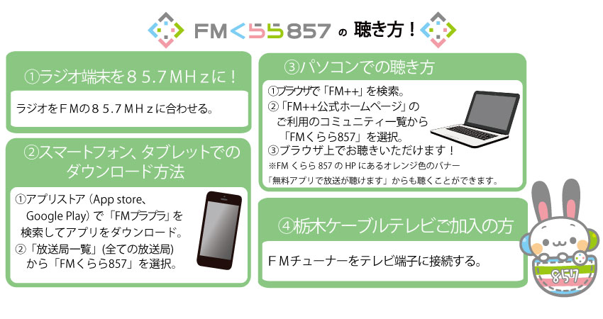 HOME | FMくらら857について | タイムテーブル | パーソナリティ | よくあるご質問 | カード会員申し込み | 加盟店募集要項 | 加盟店一覧 | メッセージ | CM/広告の掲載について | 運営会社 | お問い合わせ |プライバシーポリシー | 放送番組審議会議事録 | 放送基準